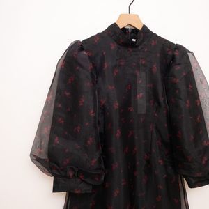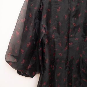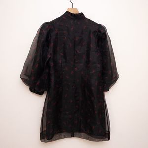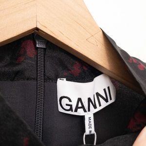 GANNI Floral Print Organza Short Shift Dress in Phantom 252 Size 42 NWT
