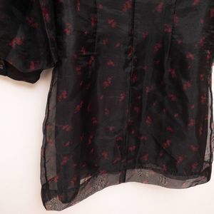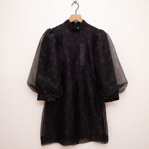 GANNI Floral Print Organza Short Shift Dress in Phantom 252 Size 42 NWT
