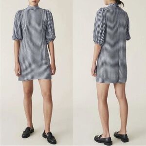 GANNI GINGHAM MINI DRESS w Puff Sleeve Detail - size 38 Preppy Punk. 100% . Approx measurements flat: bust 18”, length 34”
