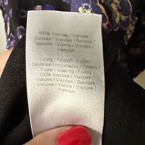 The GANNI Georgette Floral Print Balloon Sleeve Mini Shift Dress in size 36 features a charming floral pattern on a black chiffon fabric, perfect for summer, fall, or spring occasions. With long balloon sleeves and a knee-length hem, this sheath dress has a round neck and a zip closure for easy wear. Made of viscose material, this dress exudes a feminine and trendy style, ideal for weddings, parties, or casual outings. Crafted in India, this piece embraces a floral theme that adds a touch of elegance to any wardrobe.