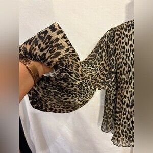 GANNI Georgette Pleated Leopard-Print Blouson Sleeve Blouse Size 34/2 US