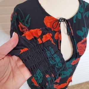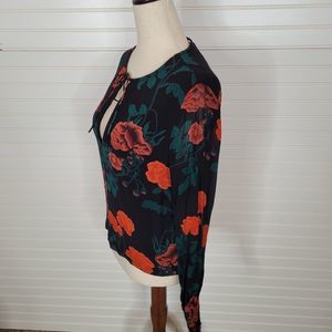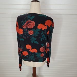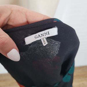 GANNI Georgette Black Red Floral Keyhole Silk Blouse Top Sz. 36