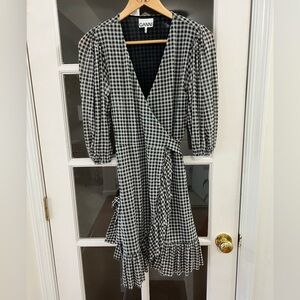 GANNI Gingham Ruffled Mesh Mini Dress In Black - Size 34 US 2 - pre owned - excellent condition