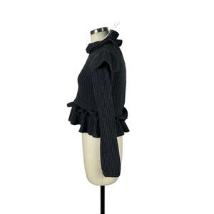 GANNI Gray Ribbed Open-Back Turtleneck Sweater Ruffles Charcoal XXS NWT Glam
