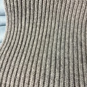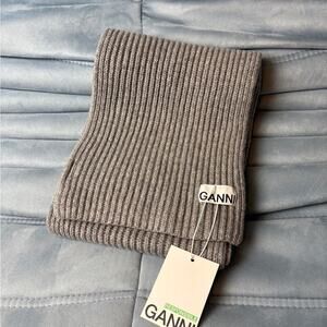 Cozy gray ribbed scarf by GANNI. Perfect for chilly days.
