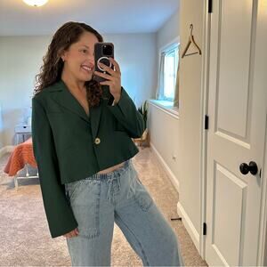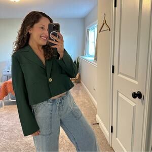 I adore this gorgeous designer GANNI green cropped one button blazer jacket