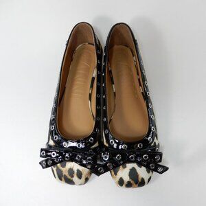 GANNI Grommet Bow Ballet Flats Leopard Print