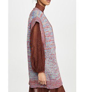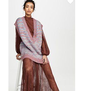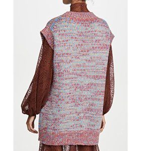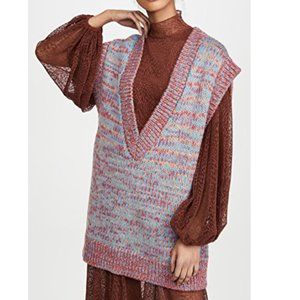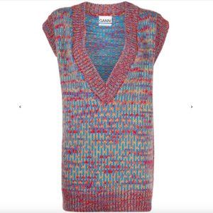 Blue and red wool v-neck knitted vest featuring a v-neck and a sleeveless design. Oversized fit. Worn less than 5 times. In good condition. #sweatervest #vest #sweater #ganni