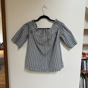 Boxy fit cotton top with elasticized off-the-shoulder neckline and 3/4 Sleeves. Color: Verona Stripes Fabric:100% Cotton Care: Machine Wash Made in India