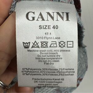 GANNI Lace Blouse Top Women's 40 US 8/10 M Teal Rust Floral Sheer Long Sleeve