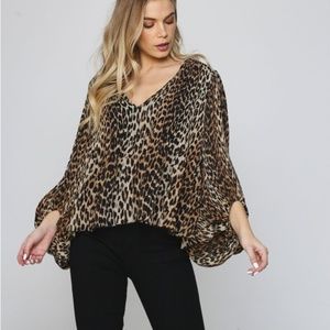 New w/o tag Ganni Leopard Pleated Top. Beautiful animal pleated print chiffon on top of a black polyester lining. V-neck front.