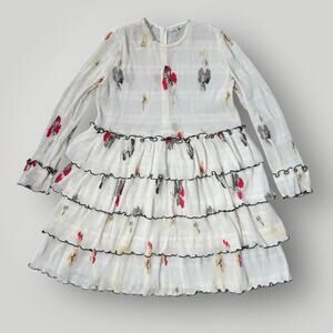 GANNI Lowell Pleated Floral-print Crepe Mini Dress sz 42 US10