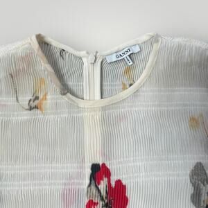 GANNI Lowell Pleated Floral-print Crepe Mini Dress sz 42