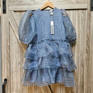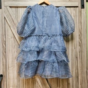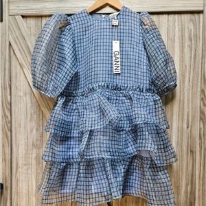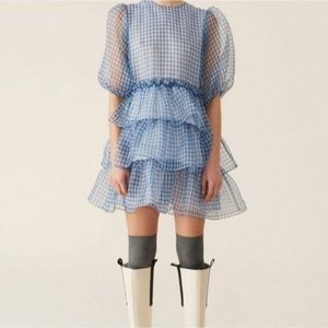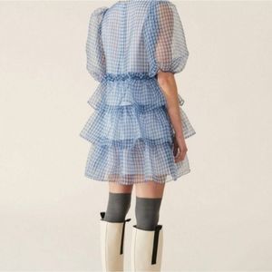 Make a statement in this Organza mini dress like you are on a runway. Made out of sheer organza adorned with an edgy floral print. Times a layered mini skirt, ruffled v-neckline, elasticated elbow-length balloon sleeves, slightly stiff silhouette, and zip closures. Pair this modern dress with some combat boots and a trendy tiny bag and get ready to make a jaw-dropping entrance.