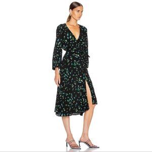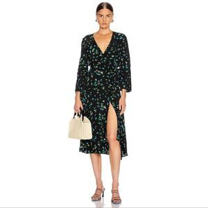GANNI PRINTED CREPE WRAP DRESS VERDANT GREEN SIZE US4/S