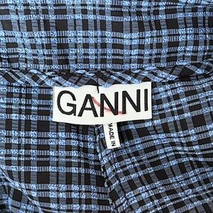 GANNI Plaid Check Stretch Seersucker High Rise Bootcut Flare Leg Pants 4
