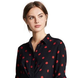 GANNI Polka Dot Crepe Long Sleeve Button Up Relaxed Fit Collared Tunic Shirt 6