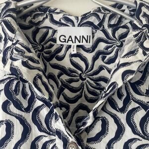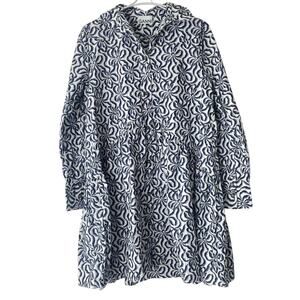 GANNI Printed Cotton Mini Shirt Dress Navy Blue SIZE 38 OR US 6