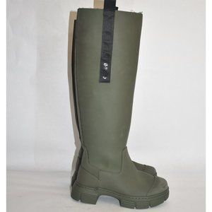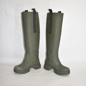 GANNI RECYCLED RUBBER COUNTRY BOOT CHUNKY STACKED GREEN 35 (1)(MD24)