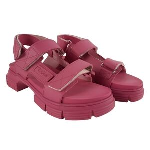 Velcro sandals in recycled rubber, featuring a GANNI logo patch and super chunky, lug soles. Perfect for everyday in summer, or layer over socks and jeans in colder weather. 50% RECYCLED RUBBER Made from 50% pre-consumer recycled rubber, which means elements that would usually be treated as waste in the production of rubber shoes, such as scraps and cut-offs, are reused in the production again. Runs true to size Flat 1.6" heel height Hits low below the ankle Round toe Adjustable velcro closure in three spots 50% recycled rubber 50% rubber sole New, no box Feel free to reach out with any questions. Offers welcomed. Thanks for visiting my closet! *100+ five-star reviews. ⭐️⭐️⭐️⭐️⭐️ *Prompt shipping. *Large closet with a focus on high-end and luxury shoes, bags, and decor; Gucci, Prada, Sergio Rossi, Double RL, Salvatore Ferragamo, Alexandre Birman, Coclico, Versace, Tory Burch, Frye, Sacai, Bally, Fendi, Paloma Barcelo, Chanel, Acne Studios, Valentino, Balenciaga, Dooney & Bourke and more. #1M