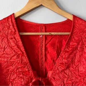 GANNI Red Crinkled Blouse In Grenadine Toe Front Size 38 / US 6 NWOT