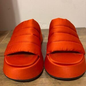 GANNI Retro Pool Platform Puffy Slide Sandals in Orange Dot Com MSRP $325