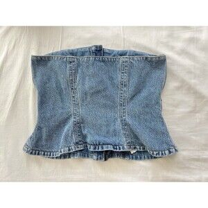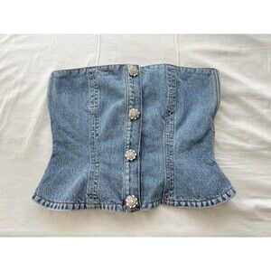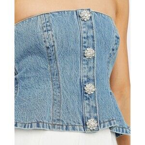 GANNI Rhinestone-Embellished Denim Bustier Blue Size 36 / US 4 Small