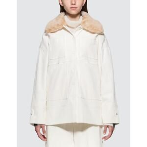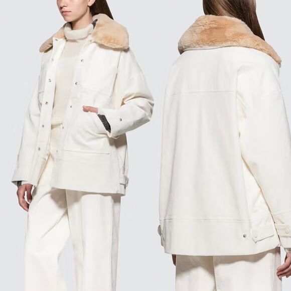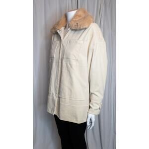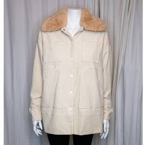 GANNI "Ridgewood" Cream Corduroy Tan Faux Fur Collar Coat US 6