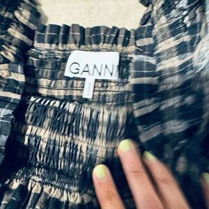 GANNI Ruched Check Blouse