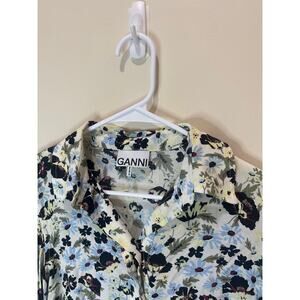 GANNI SZ 36 Floral Print Crepe Button Up Blouse Longsleeve Top MSRP $215 GREAT!