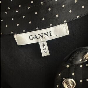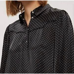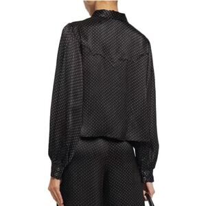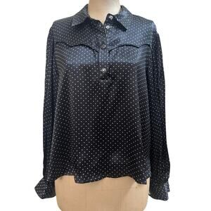 Ganni Black & White Polka Dot Satin Western Snap Button Blouse size 36 (4) (Small)