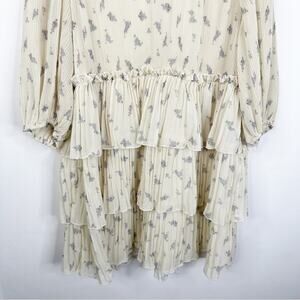 GANNI Size 40/ US Large Floral Print Pleated Georgette Babydoll Mini Dress