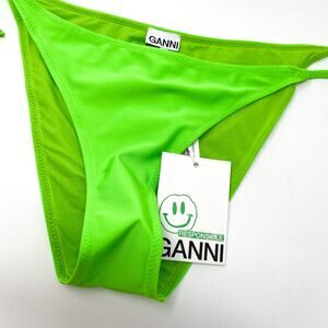 Ganni Neon Green Solid Side Tie Bikini Bottoms