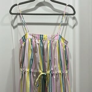 NWT GANNI Striped Cotton-Poplin Spaghetti Strap Midi Dress Sz 32 XXS