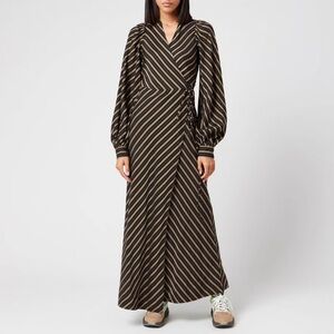 GANNI Striped Long Sleeve Wrap Maxi Dress Size EU 36/S/US 4 Black Gold