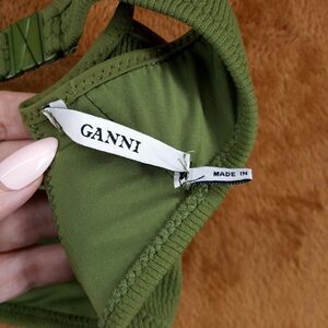 GANNI Top Womens Small Green Crop Bralette Adjustable Strap Stretch