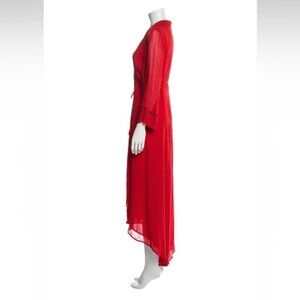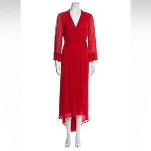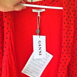 GANNI Wrap Dress S NWT Polka Dot Dress Red Mullin Georgette Size 36 $299