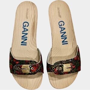 GANNI X Dr. Scholl Red Floral Slip on Low Heel sandal Clogs Size 8 NWT