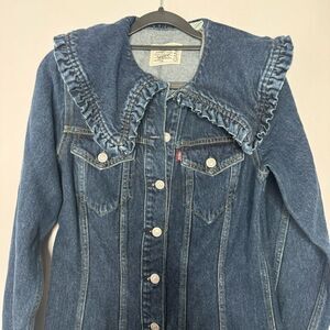 GANNI X LEVI'S Ruffle-trimmed cotton and hemp-blend denim shirt dress size small!