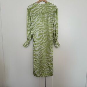 For a statement dress that delivers a playful attitude, look to this zebra-print midi dress from Ganni. It's cut from stretchy silk-blend satin with string ties that allow you to cinch its silhouette.