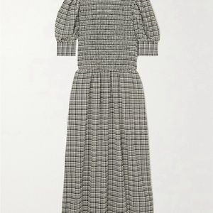 GANNI's midi dress is the perfect blend of vintage and modern. Made from checked recycled seersucker, it has a shirred bodice with delicately puffed sleeves and a pretty, plunging back. Pair yours with chunky loafers, true to the label.