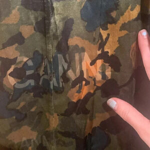 GANNI brand camo satin skirt. Euro size 36 is equal to a US 4, and I feel like this skirt would best suite a size small. Stock photo added for reference from the website. No callouts, just a little wrinkled. In great condition!