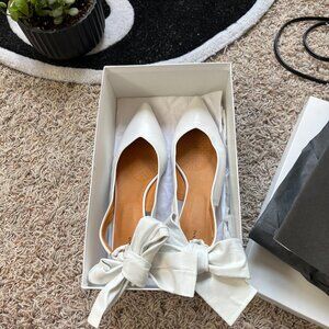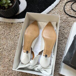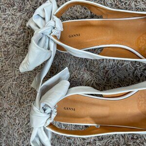 GANNI white slingback sandal kitten heel mules with coquette bow