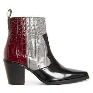 GANNI - women’s Callie croc effect glossed leather western heeled ankle boots 10