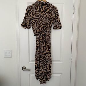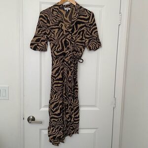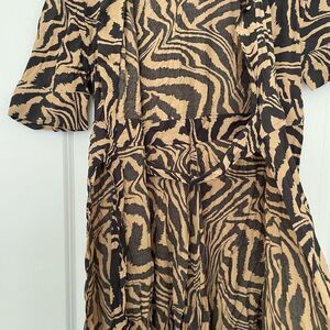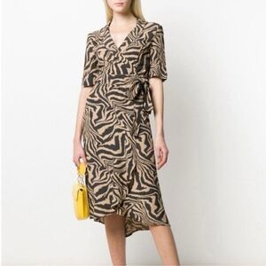 GANNI womens Tiger print wrap dress brown black size 38 USA size 6