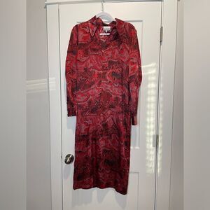 This red midi dress debuted as the second look on Ganni's AW19 runway show. It's cut from sumptuous silk-blend satin with a sharp pointed collar and falls languidly over the body to a demure length with a concealed back zip – allowing you to adjust the hem slit. Tap the show's styling by buttoning the collar so it softly overlaps.