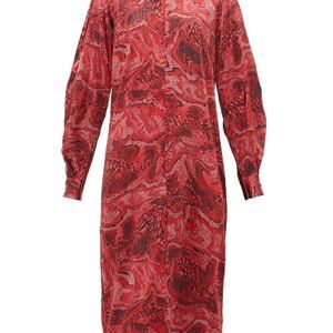 GANNI Snake-Print Silk-Blend Satin Midi Dress