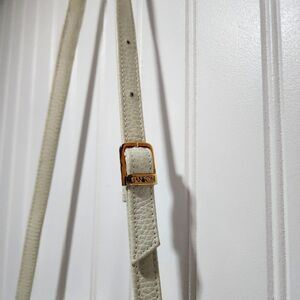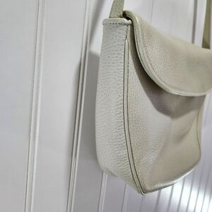 GANSON Vintage Ivory Pebble Leather Gold Hardware Crossbody Flap Purse