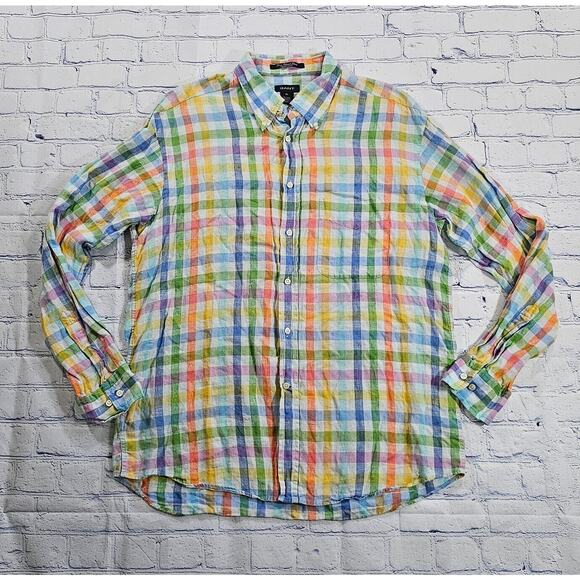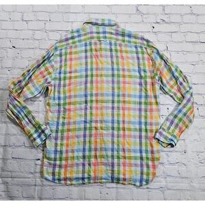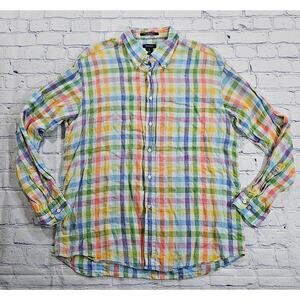 GANT Long Island Linen Regular Fit Button Shirt Preppy Rainbow Plaid MENS SZ XL