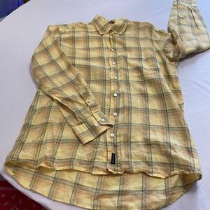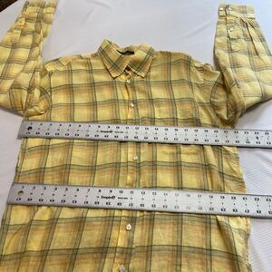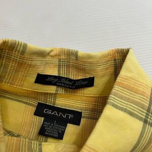 GANT Long Island Linen Yellow Plaid Dress Fit Button Up Shirt Size Large